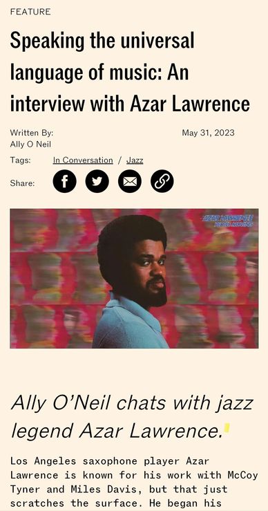 "The musical and the metaphysical have always converged in the work of tenor and soprano saxophonist Azar Lawrence…” — WBGO